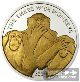 17.看不见邪恶,听不见邪恶,决不说邪恶, 索马里光是索马里的硬币,本来就可以排进前20 名。现在我们看看这三只智慧猴,它们由混合的金银铸成。这几只怀抱忠诚信念的灵长类动物,会赞同如此明显地运用它们的信念吗?