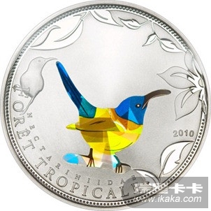 19.棱柱太阳鸟, 多哥(非洲西部)多哥的这枚硬币,在纯银的背景中刻着一只棱柱体的太阳鸟,当移动硬币时,硬币随着光线变化而闪烁,并改变颜色。如果你不经常喂这只鸟,它可是会飞到另外的硬币上去哟。