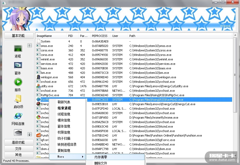 测试发现将ravmond的进程清零,能结束瑞星进程!!!