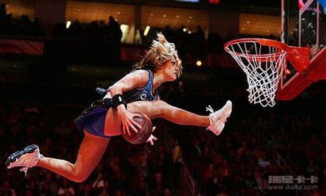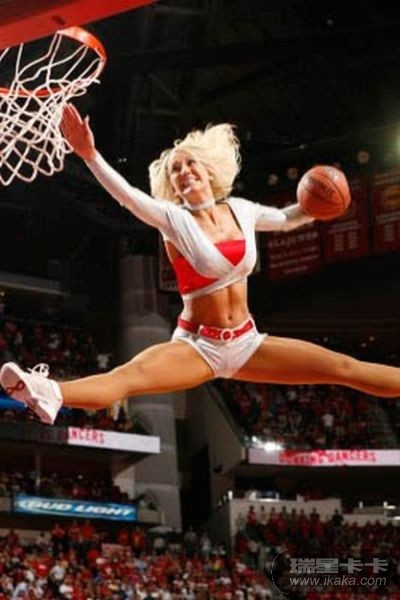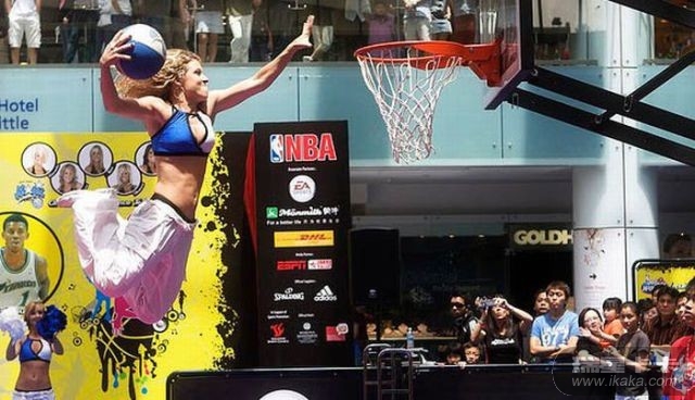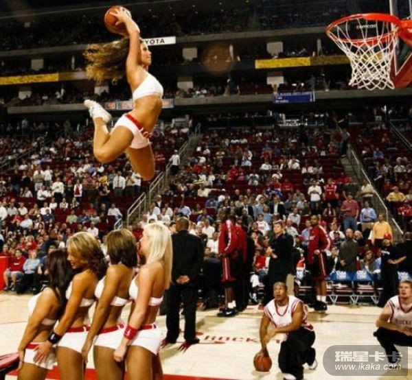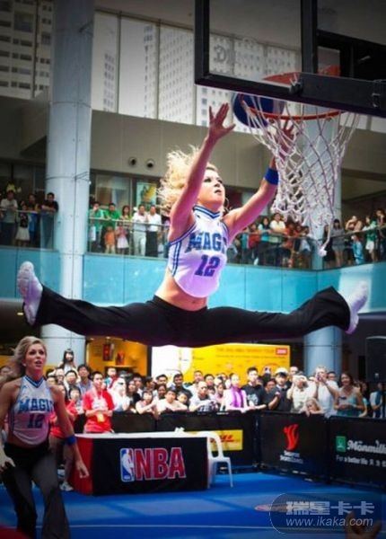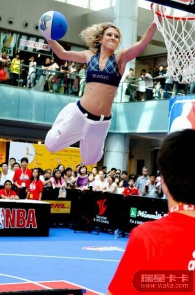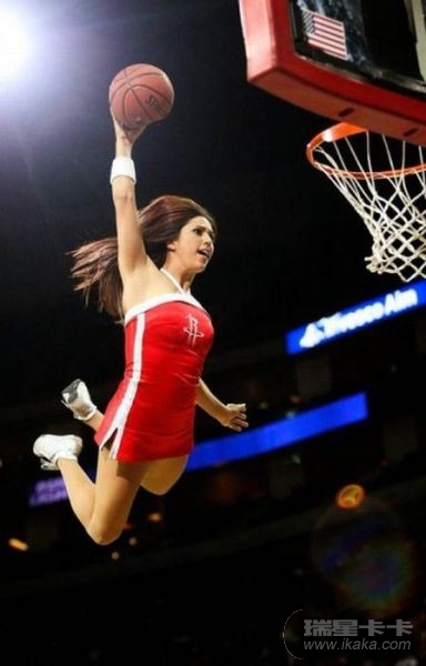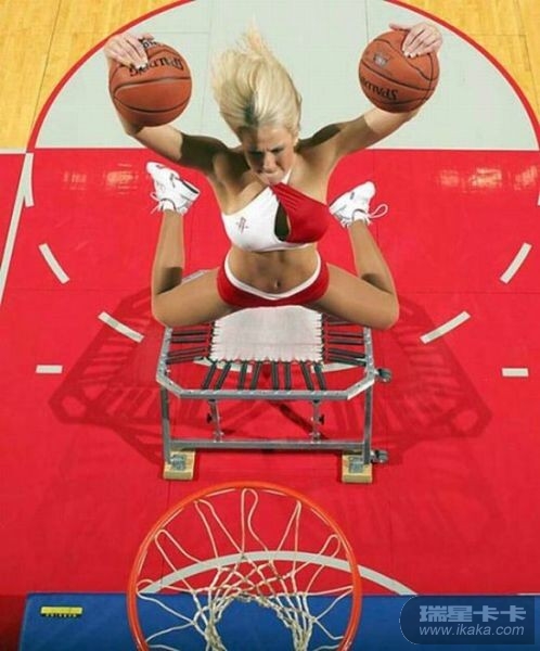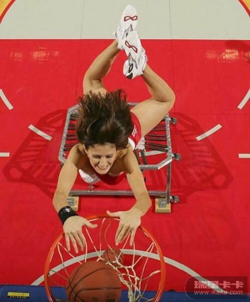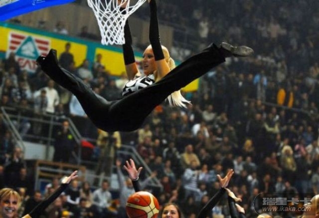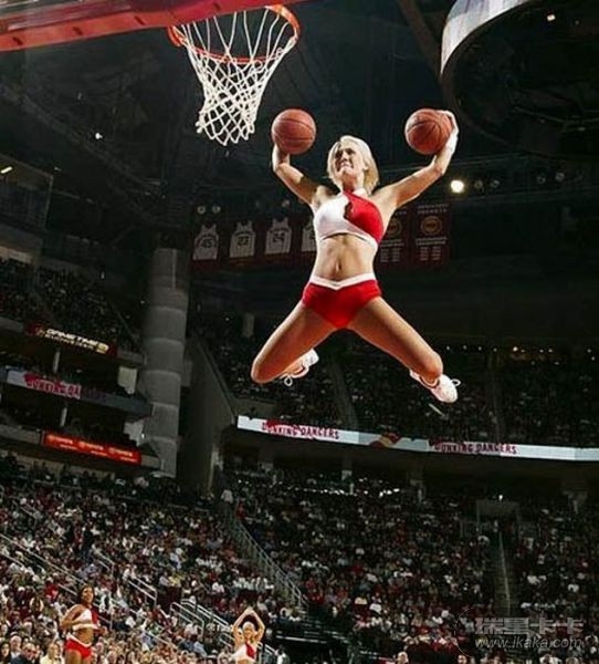 这些女孩子太厉害了,扣进球后,掉下来会不会摔伤的呀!