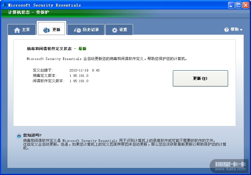 只要开启瑞星保护,Microsoft Security Essentials就无法升级(包括病毒库升级和程序升级)!!!