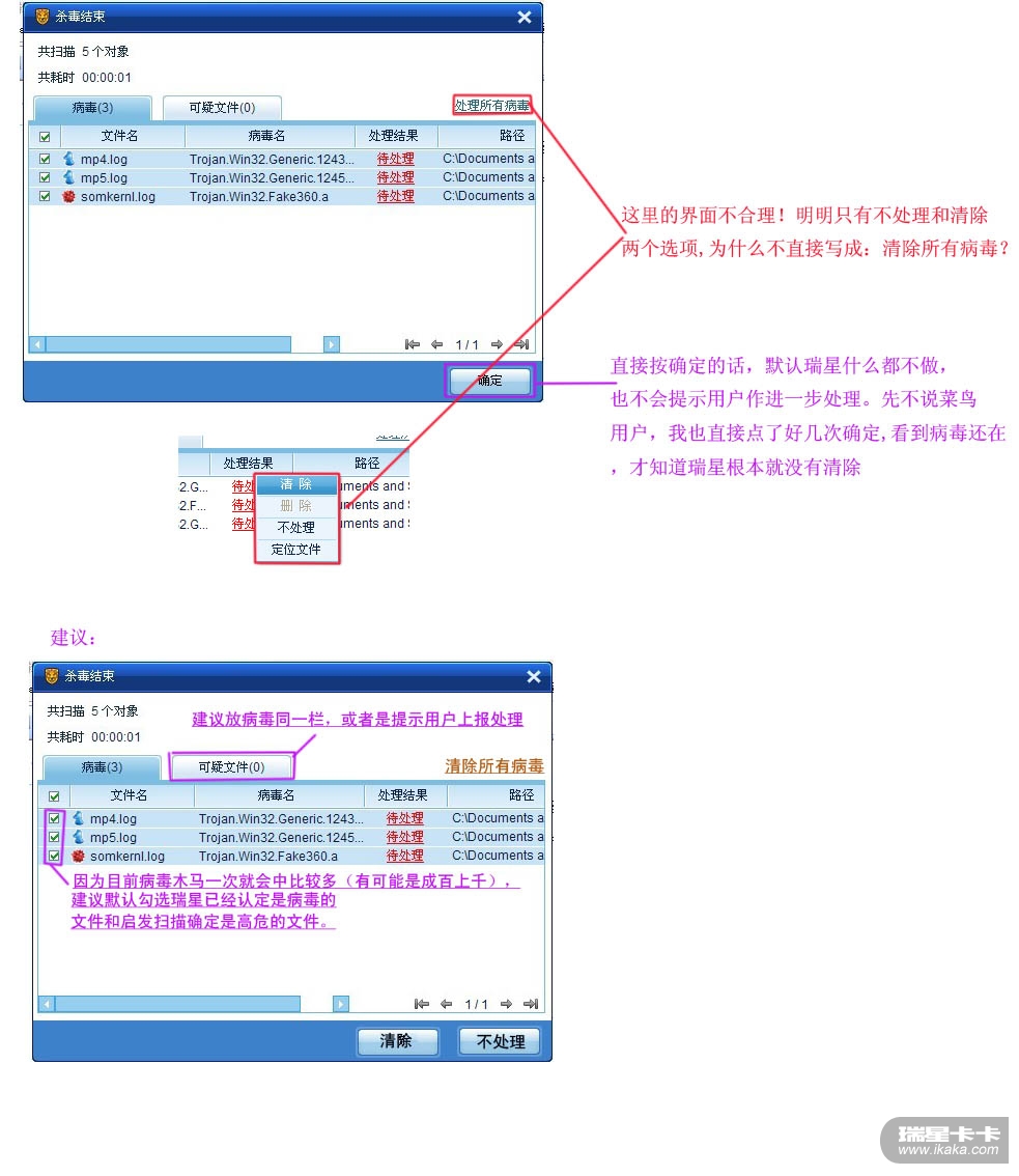站在菜鸟/白痴用户立场:我们不懂电脑,花了钱买杀毒软件,只是希望能不中毒,或者是中毒之后只需要按一下杀毒。