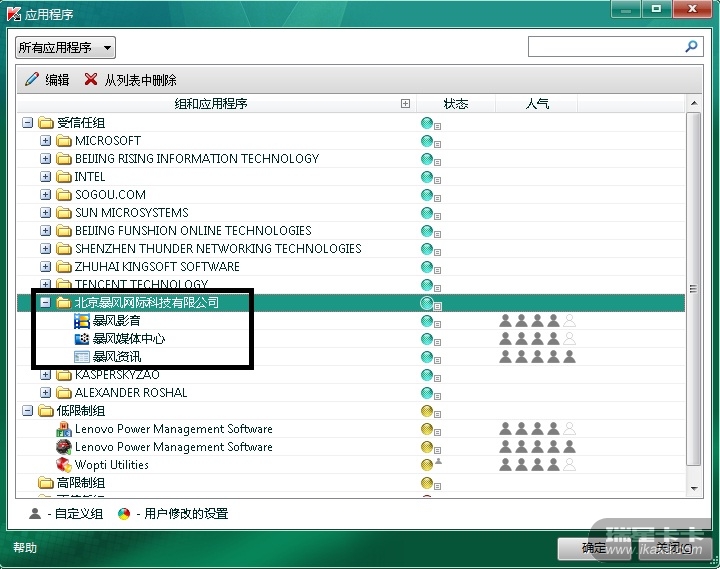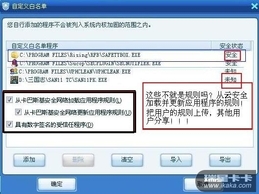 卡巴的白名单 分为两部分,用户添加的和 卡巴生成的!!!