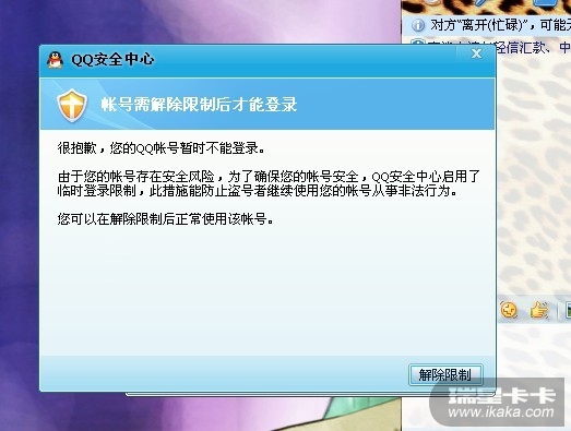 “登陆框显示出解除限制按钮”这个发个截图来看一下。