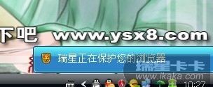 就是那个解除限制按钮,本来应该点击的话会出现网页,可是我点击的时候无法显示,在右下角会出现“瑞星在保护您的浏览器”的消息。如下图: