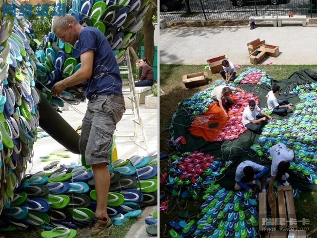 胖猴子是一个超大的充气猴子,是用成千上万只彩色塑料拖鞋做成的。它是由荷兰鹿特丹港的艺术家florentijn hofman在本地学生的帮助下构建完成的。现在位于巴西圣保罗。你乍一看,还以为它在躺着睡觉呢,这哥们会不会是中暑了呢?