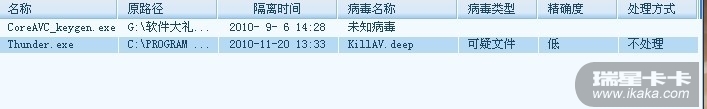 LZ,我现在都用双杀软啦。对瑞星的杀毒能力不敢保证。