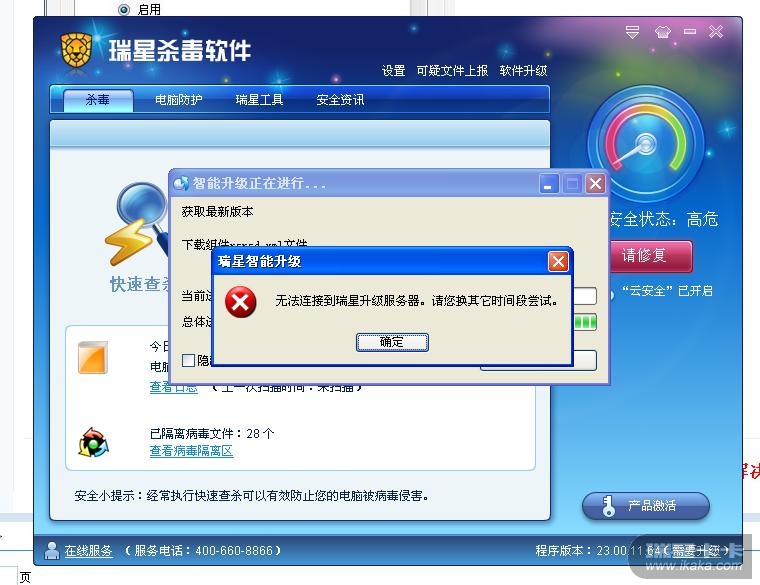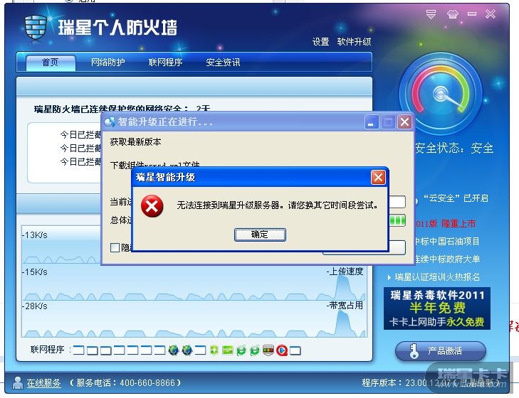 关闭防火墙监控后是否可以升级?是否安装有其他安全类软件?请关闭监控后观察。