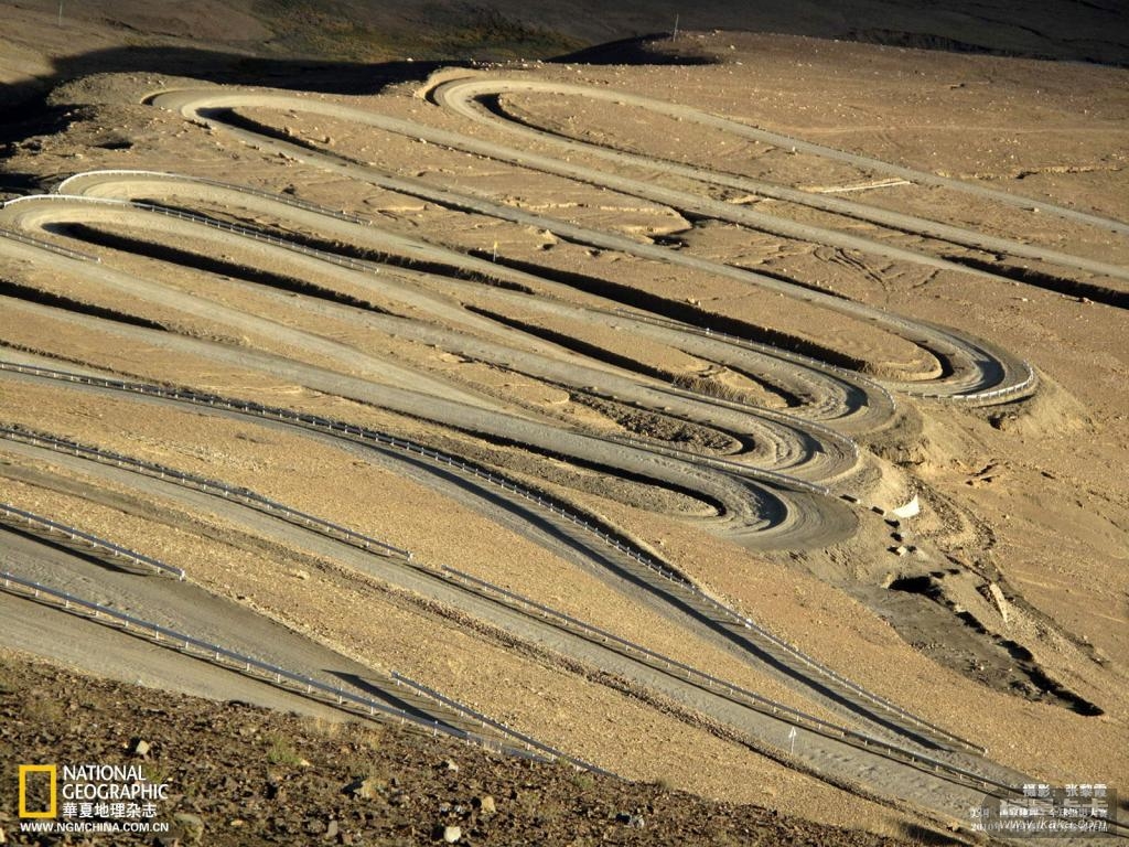 说明:通向珠穆朗玛峰的盘山路九曲十八弯。