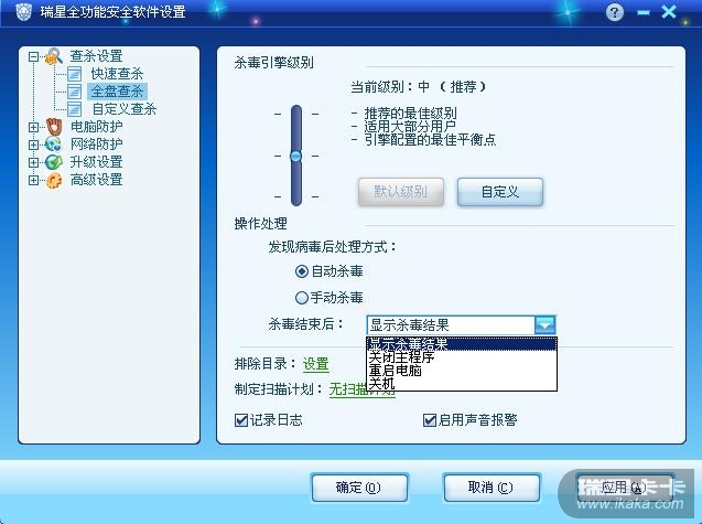瑞星全功能2011怎么没有“杀毒完成后自动关机”的功能?