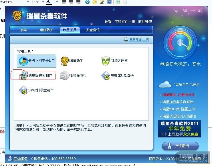 升级完成后,打开瑞星杀毒软件,点击“瑞星安装包制作”按钮毫无反应,之前是没有这个现象的~~:kaka2::kaka10: