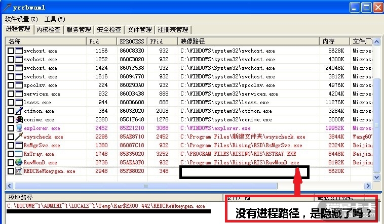 结果:似乎是隐藏进程----看不到 恶软的进程!!!;