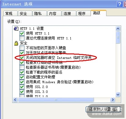我没卸载杀毒或者防火墙去验证到底是杀毒还是防火墙导致IE不能自动清空临时文件夹,我现在两台电脑,另外一台电脑配置低些,我使用了360的杀毒软件,没装瑞星,那台电脑IE自动清空临时文件夹功能是正常的,只要关闭了上网的软件,如QQ,旺旺等这些,打开IE再关闭IE就能看到硬盘指示灯在闪,就知道是自动清空IE的临时文件夹内容。瑞星没升级到2011版时候IE是完全正常的。我个人推测是不是2011版瑞星有一个进程一直保持上网的状态,这样导致IE认为还有其他软件联网,所以不会自动清空临时文件夹呢?