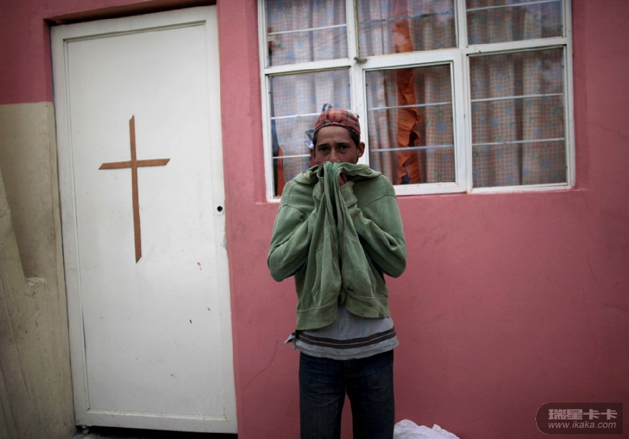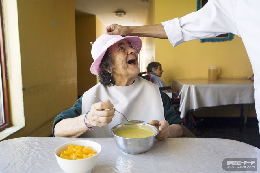 3月25日,秘鲁首都利马。图为:一为老年痴呆症患者在养老院享受自己的午餐。