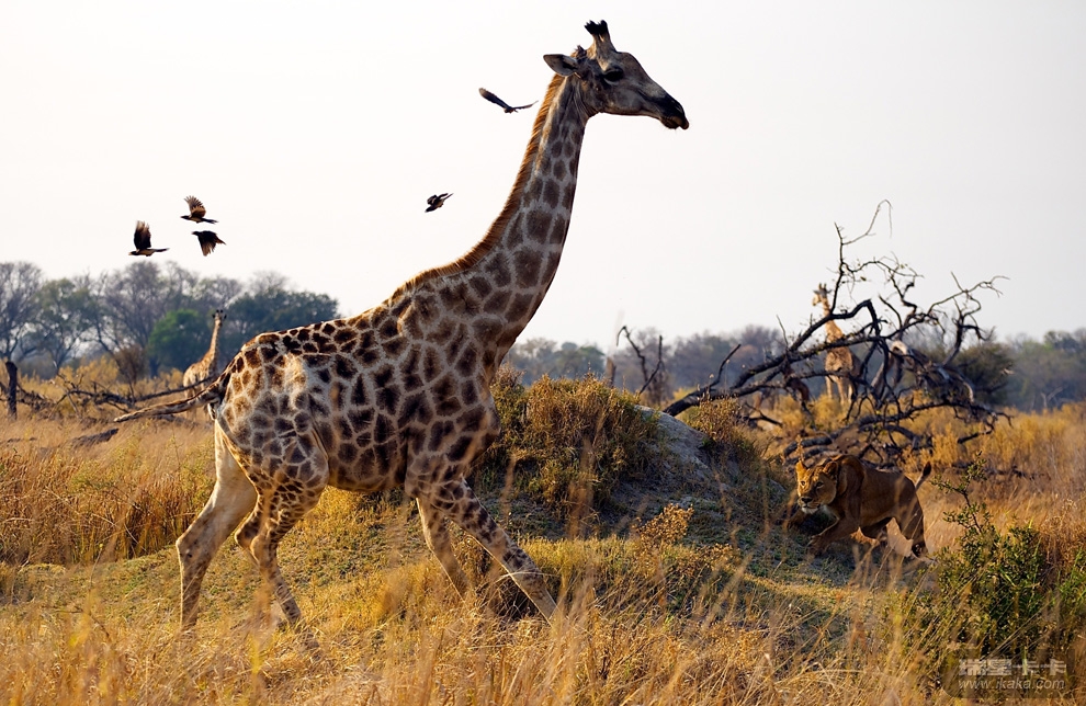 1. 博茨瓦纳Kanana露营地。我们把车停在路边打算观看长颈鹿觅食,突然我们发现小土丘后面潜伏着一个黄色脑袋。是饥肠辘辘的母狮。她边观察边等待,准备伺机而动,终于她在长颈鹿觉察到危险的那一刻发动了攻击,猛扑上去。然而,母狮的追赶没有成功。她饿得躺倒在地,被杂草遮蔽了。她距离我们不到10英尺。她再一次进入等待中。