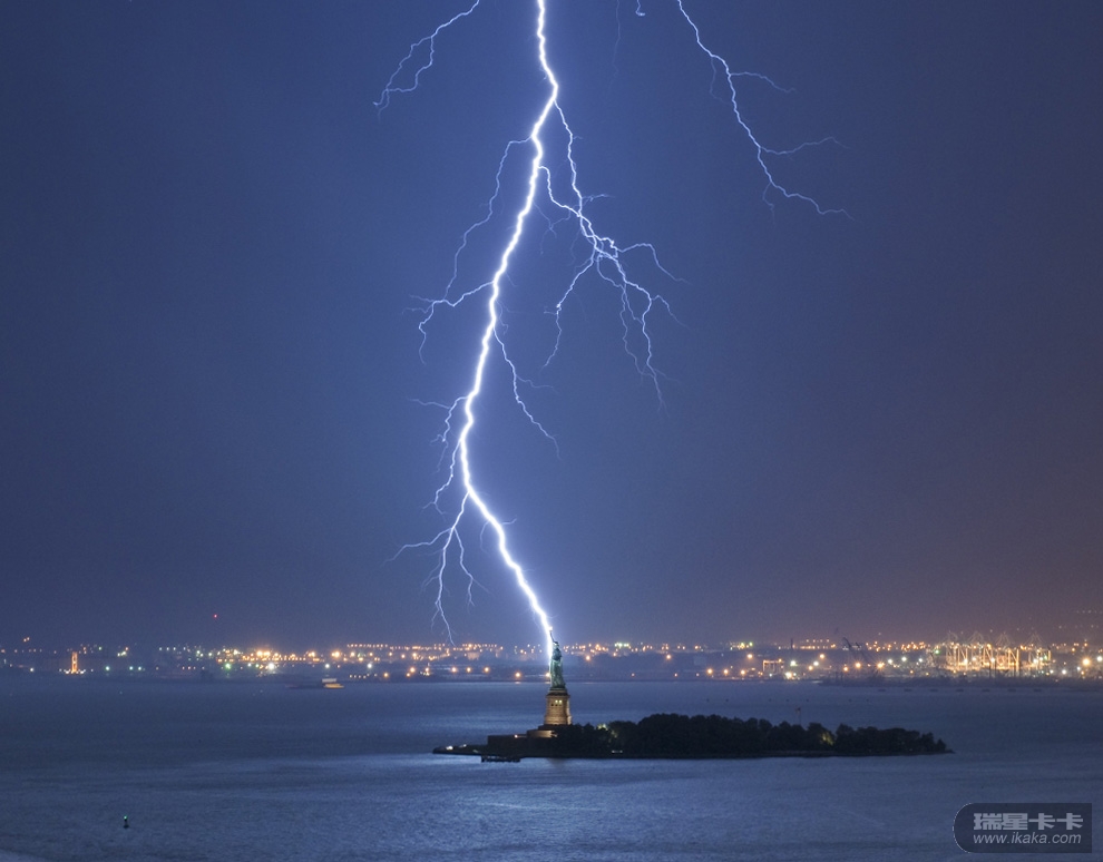 16 纽约港上空的闪电。这是一个电闪雷鸣的时刻。几乎没有一丝风,雨也没有下来,我安全地呆在室内,打开窗户静候。这是那个夜晚150道闪电中的第82次。