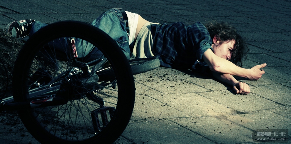 23 失手的自行车手。没有把握住刹车的自行车手倒地后痛苦不堪,这位身强力壮的极限运动爱好者此刻却显得那么单纯、疲惫不堪甚至不堪一击。