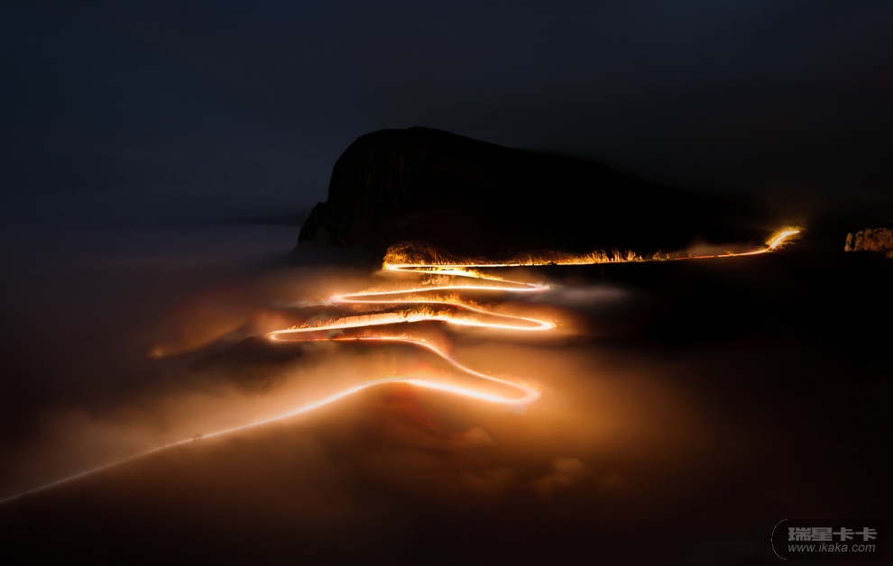 24 这是安哥拉卢班戈附近的著名地标塞拉大勒巴公路,建于上世纪70年代,几十年来一直印在该国的明信片上,但都是白天的镜头。我想尝试进行夜间拍摄。但似乎不太可能:漆黑一片、大雾弥漫,而且海拔1800米。我原来打算用60秒的最大暴光值,但汽车走完这段路程需要几分钟车时间,而且浓密雾气挡住了视线!突然云消雾散,有汽车在下山也有汽车在上山,60秒钟不到它们在路段中间相遇了... 于是这张照片便诞生了!