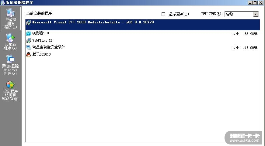 还有瑞星提示过一次端口扫描,然后成功阻止了,其他的就没什么了,可当我打开控制面板打开添加删除程序的时候就出现上图那样了。