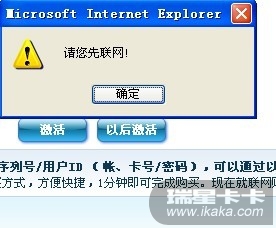 我刚用手机买激活码,可是在激活的过程中瑞星提示我请我先连网,不知道什么意思,我本来就在网上