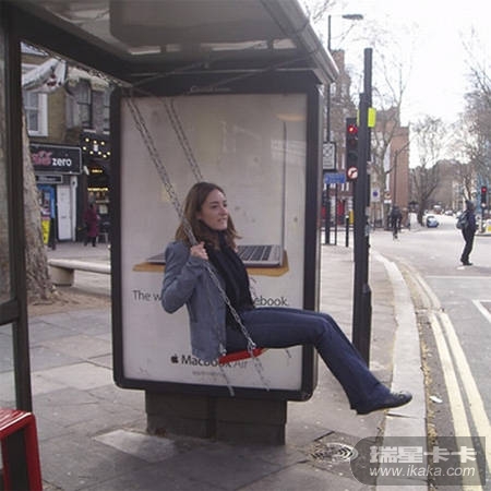 秋千车站……说实话,要我还是选择吊床,秋千摆动的幅度万一太大了,超过了街沿,可就危险了。位于英国伦敦。