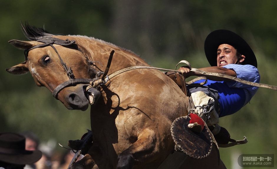 阿根廷埃斯科巴,一名牛仔在马术比赛中。