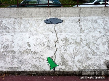法国艺术家似乎很喜欢在街头运用想象力来发掘关于创作的各种不同可能性,这是一位法国街头艺术家 OakoAk 的作品。他利用丰富的想象力让城市街头增添了幽默的元素,也间接让繁忙的都市生活多了一点润滑剂!