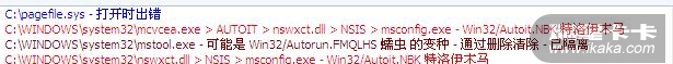 然后又格C盘重新装了系统 没动D盘(只有C D2个盘)把杀软装了升级一查C盘还是有毒 MSCONFIG MSTOOL 我记得有这两个