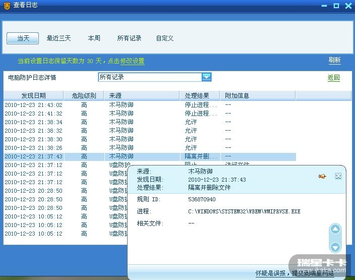 请楼主提供瑞星日志以便于我们提交相关部门分析。