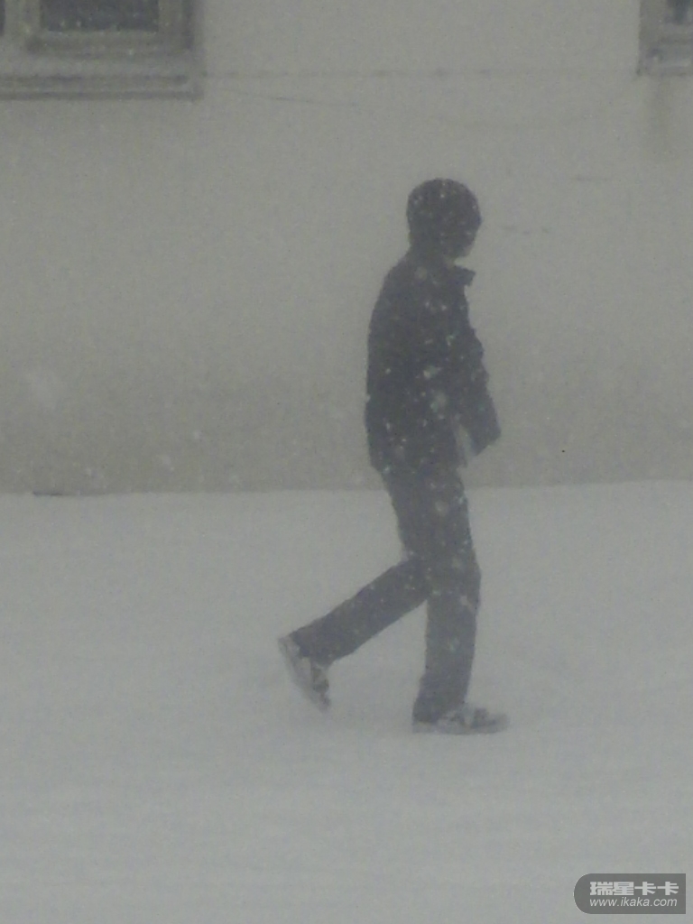 今天早上醒来就发现下雪了 但不是很大 偷拍楼下路过的一小帅哥 嘿嘿 隔着窗户拍了一张