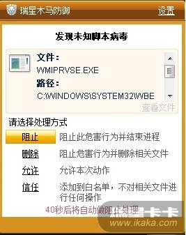 结果: 瑞星总是报警,报告发现未知病毒!!!