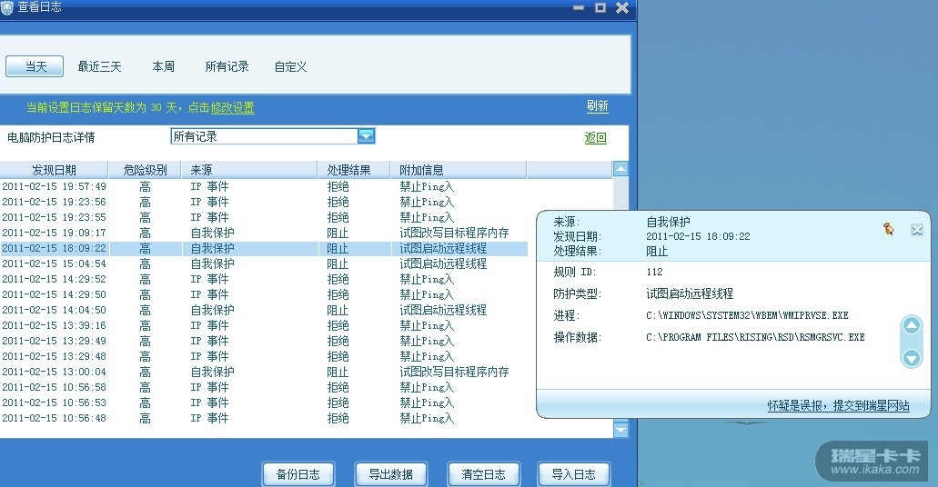 ,瑞星自我保护每天不定时弹出vmiprvse.exe干扰瑞星的正常运行。文件路径: C:\WINDOWS\SYSTEM32\WBEM\WMIPRVSE.EXE