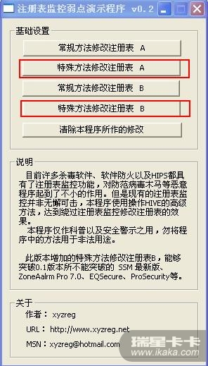 如病毒利用此方法添加注册表项瑞星可以拦截并处理。