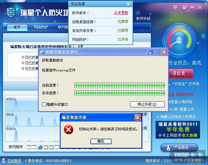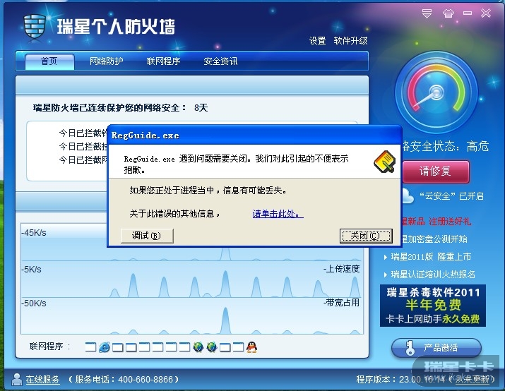查看注册表:HKEY_LOCAL_MACHINE\SOFTWARE\RISING下是否有RFW,有请删除RFW