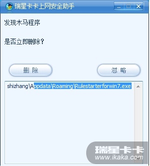今天卡卡报木马,用了这么多年没主动有动静,不知道这是什么程序,就是报木马!卡卡版本6.2