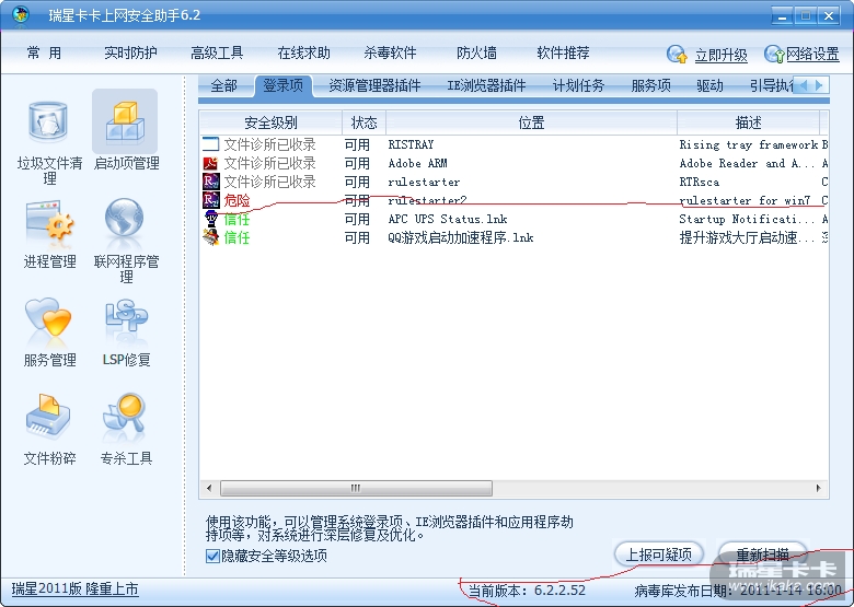 卡卡版本6.2 。卡卡系统扫描时候也是提示 这个‘安全规则’包的文件是危险。
