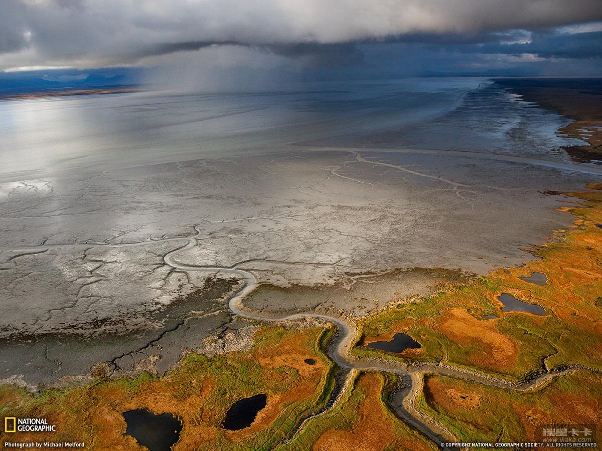 努萨戈克湾(Nushagak Bay)上空乌云密布,一场暴风雨即将席卷提议建设的佩布尔矿。渔民称,开矿可能会威胁到当地的鲑鱼资源,但矿主梦想着财源滚滚以及大量的就业机会。