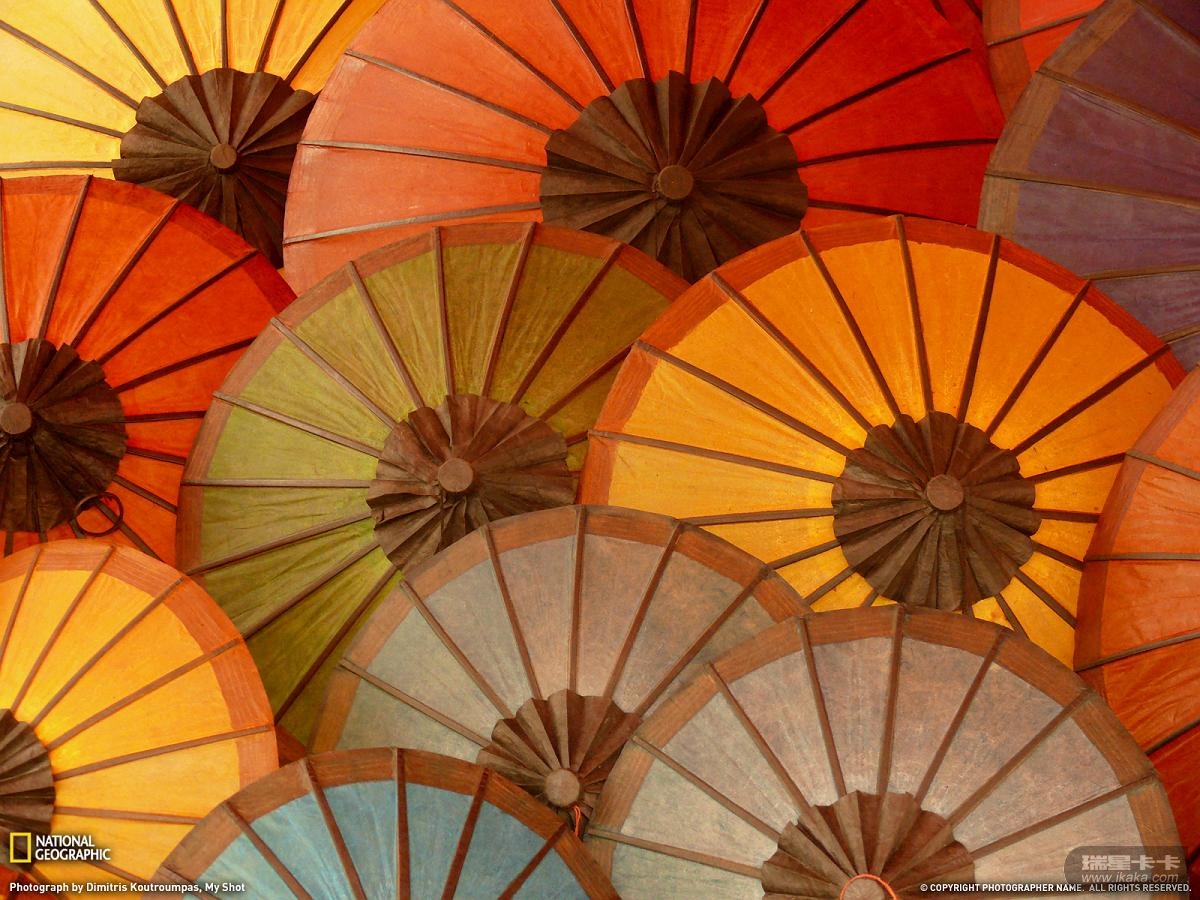 《五彩缤纷的雨伞,老挝,琅勃拉邦》