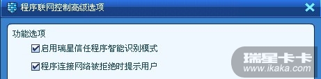 程序联网控制中的高级选项,建议楼主勾选如图选项,这样经过瑞星安全认证的会自动放过。