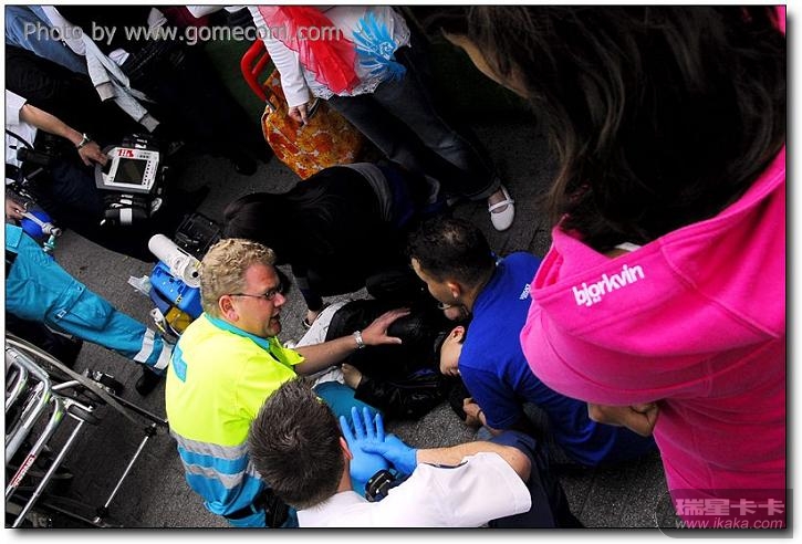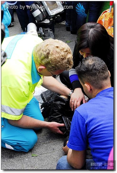 那个托着孩子头部的穿蓝色T恤的荷兰人让我觉得特别感动,从发现孩子倒下开始,就跪在孩子头部旁边托着孩子的小脸儿,在现场救治过程中,也始终一动不动地跪在地上,用自己的双手充当这个陌生的异国孩子的枕头,并告知医生孩子倒地时的情况。