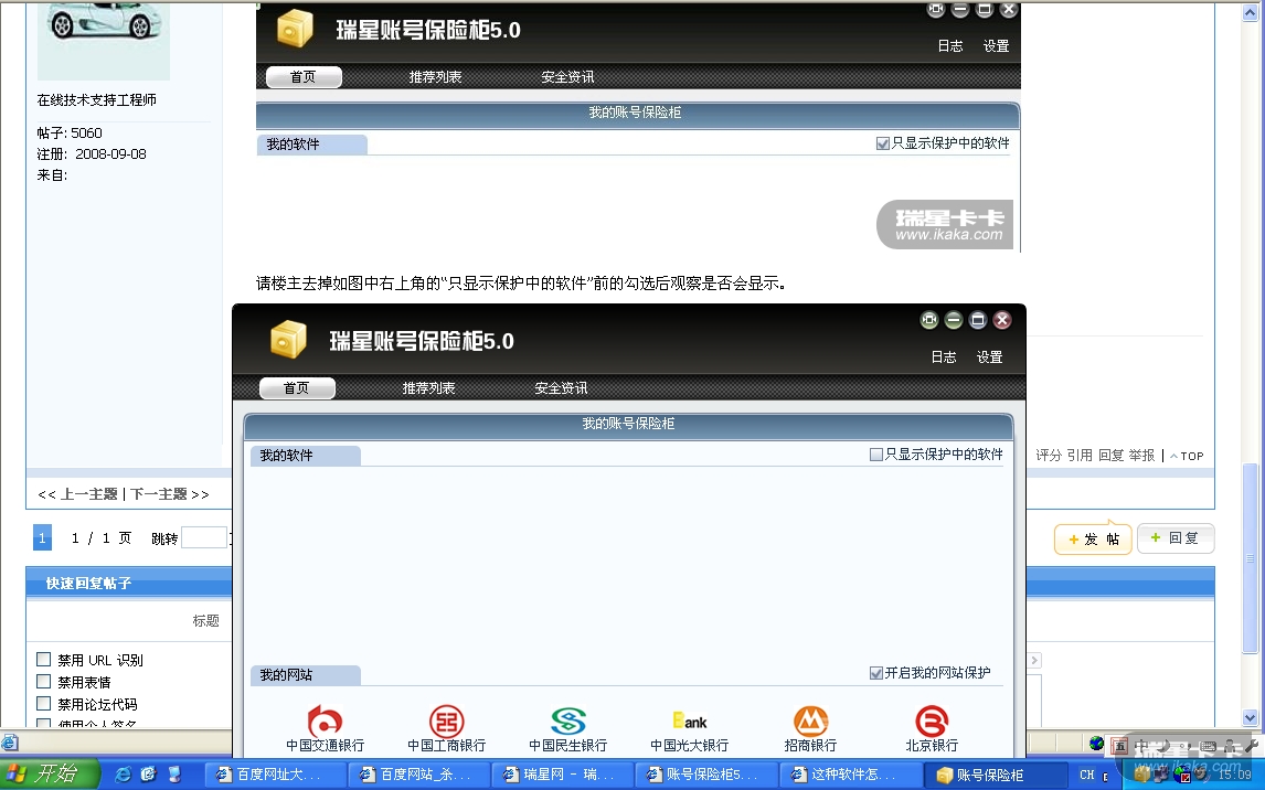 账号保险柜5.0首页都没有软件,,都开着浏览器在卡卡记论坛里发帖了,,还没有反应
