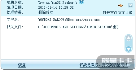嗯 我的开始也能查杀 后来急着用 就把瑞星小关了一下 完了就中招了