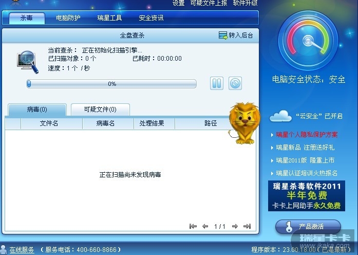 不知道为什么有一天用我家瑞星杀毒