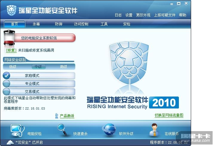本人今天做了个实验把系统重装了一遍,装回瑞星全功能2010版