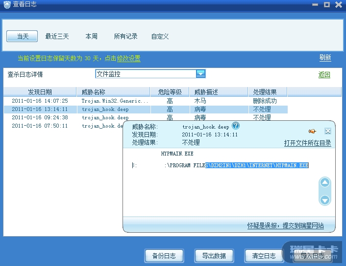 自定义杀毒,您再快速查杀一下,直接杀毒软件死了,ravmond.EXE占用 50%导致瑞星卡死,“自定义、速杀”哪个也结束不了了,WIN7没死瑞星自己忙死了。