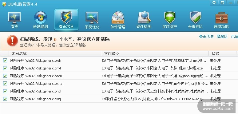 我是瑞星老用户,最近装了QQ电脑管家,扫描发现N多风险程序和木马,提示的文件在我硬盘里都很多年了,为什么几年来用瑞星扫描(我每天都升级)从没报过毒,也没有给过提示什么的?