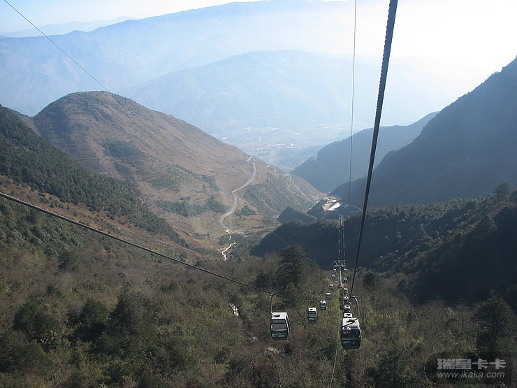 缆车穿行在崇山峻岭之上,颇为壮观