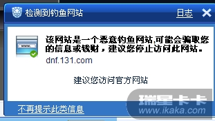 网站地址是:dnf.131.com我在游戏官网链接进去时,瑞星提示说钓鱼网站。