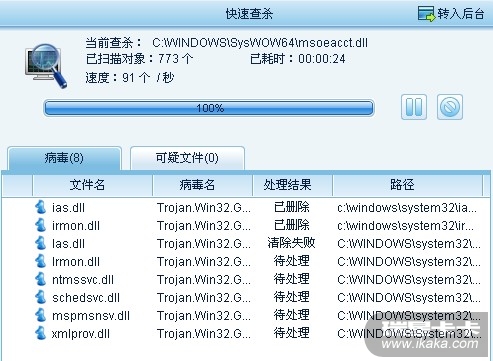 今天升完级后我在安全模式下杀毒杀掉两个病毒