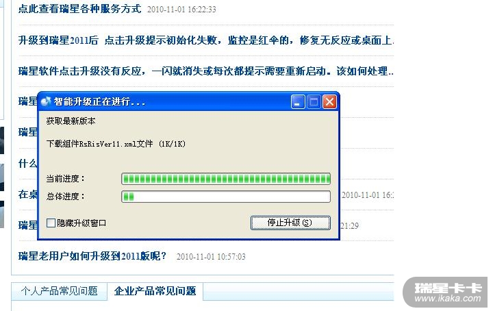 瑞星不能自动升级,手动升级后,显示上述内容后,一闪就没了,请教各位大侠,谢谢
